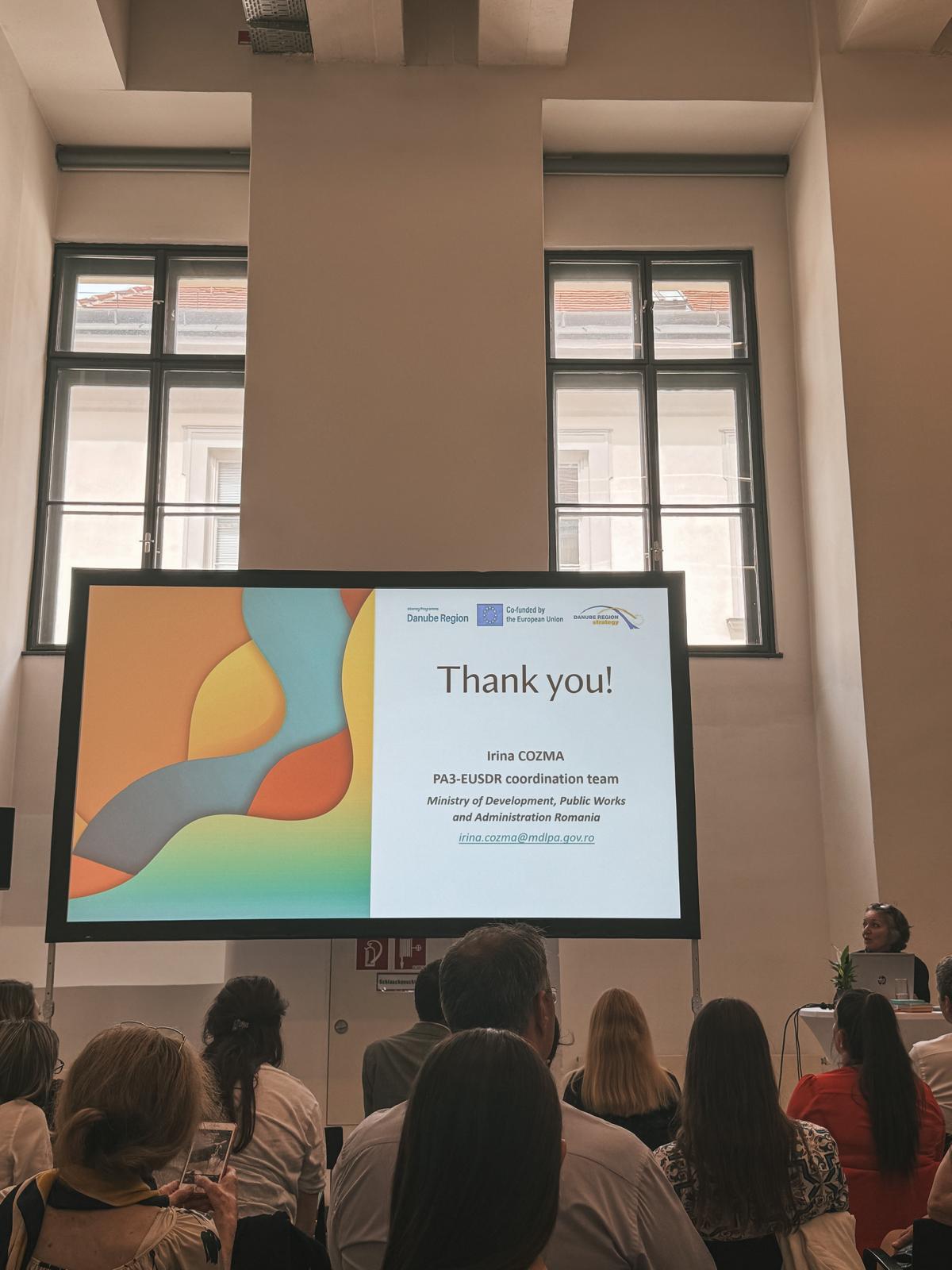 Ana-Karina Suditu, representing the Danube Youth Council, participated actively in the meeting and delivered a presentation during the panel on youth activities in the Danube Region. Speaking on behalf of the Council, she highlighted the critical role of youth in shaping macro-regional cooperation and shared insights into the Council’s projects and achievements in 2024.